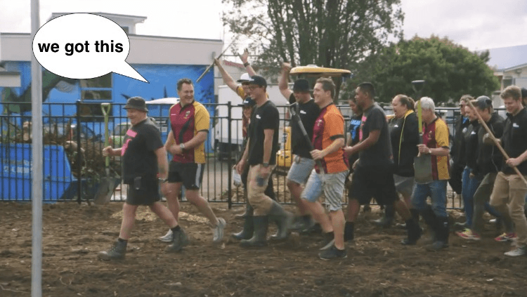 When they weren’t playing Cards Against Humanity, they were tasked with transforming the grounds of the I Have A Dream HQ. It was a huge undertaking for the octet and they had absolutely no help aside from a team of labourers, landscapers, fencing specialists and a massive group of volunteers.