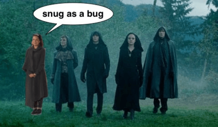 Even though it’s reminiscent of the Volturi (or perhaps because it is), I’m obsessed with Stacey’s rug-cum-cardigan get-up. It looks bloody cosy and I want to wear one from now until the day I die.