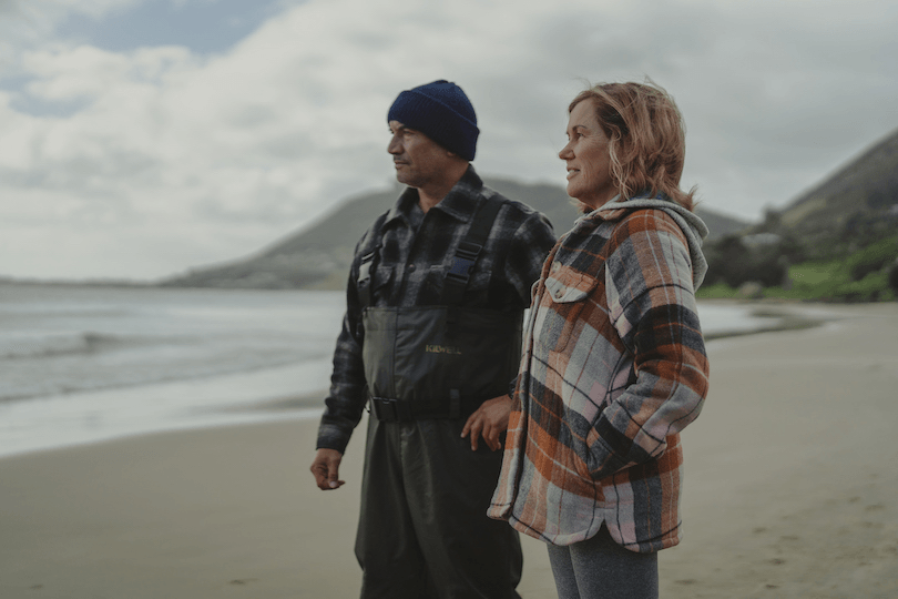 White moved to Ahipara while he wrote the screenplay, embedding himself in the community and becoming close friends with the real Heather and Ed. As a documentary maker, White understands that it takes time for people to trust someone else with their story. “I spent a long time walking up and down the beach with the real life Heather and her dogs, talking about the world. It was a dream in that respect,” he says. “Heather and Ed are so beautiful and down to earth and lovely and caring. Tem and Robyn have done a great job portraying them.