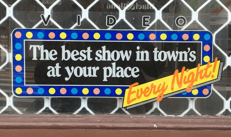 A couple of years ago, I wrote and performed a solo theatre show called The Best Show in Town is at Your Place Every Night (first season sponsored by, I am proud to say, AroVideo). The title came from a large sticker on a window of Kilbirnie Amalgamated Video. (Here’s their “end of an era” story). My show used video stores as a metaphor for the things Wellington has seen and lost over the last 40 years or so. Except it wasn’t just a metaphor. It was very specifically about video stores.