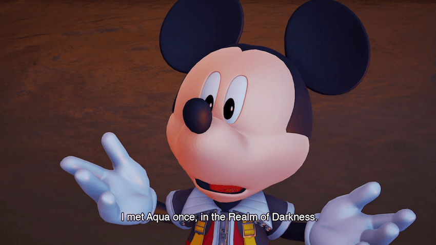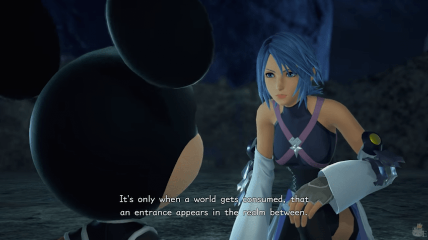 - Aqua is pulled deeper into darkness, which I need to remind you is literal and not metaphorical. She’s found by King Mickey (there that rascal is again, still being relevant to the plot). She and Mickey team up to help Sora and Riku close the Door to Darkness to save worlds from the Heartless.