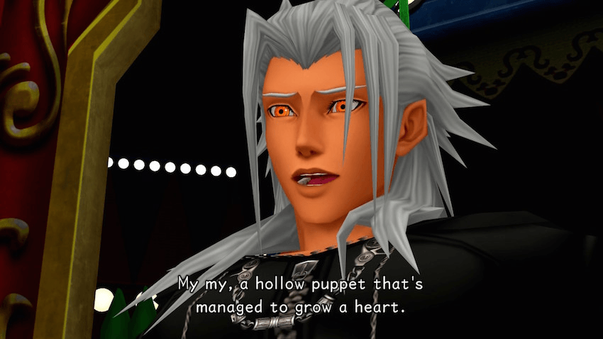 Ludicrously, this is pronounced ‘Three hundred and fifty eight over two days’. It came out for the Nintendo DS in 2009, and is told from the perspective of Roxas, before he got shoved into a computer somewhere to incubate Sora’s memories or powers or whatever. It occurs roughly at the same time, chronologically, as Chain of Memories.