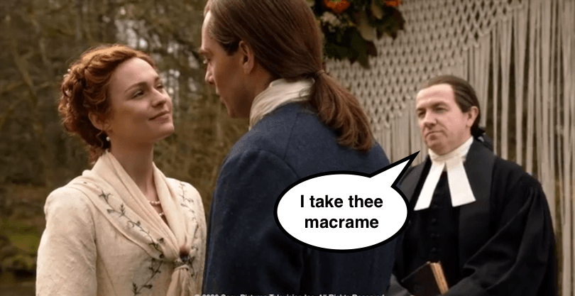 Thankfully this episode had juices aplenty, especially during the extended sexy-time montage. North Carolina has been colonised by a bunch of hornbags, and nothing gets them fruitier than a wedding in front of macrame backdrop. Jamie and Claire were at it, Bree and Roger were at it, Jocasta and Murtagh got it on in the Idiot Hut II. Even the pigs were probably rutting their porky little hearts out, because nothing makes the Fraser clan happier than being together and celebrating how good their lives are now.