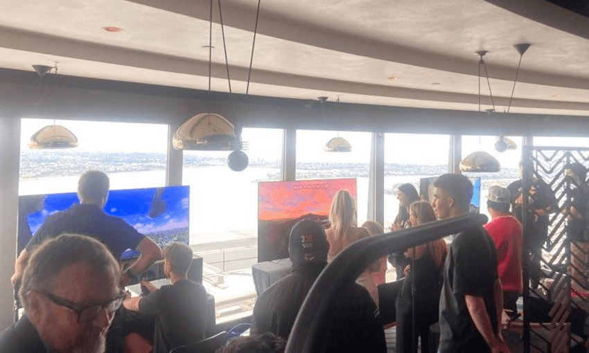 Watching him play Flight Simulator in front of us felt pretty surreal. Not just because watching an All Blacks legend play a video game is a surreal experience, even in the age of Twitch streamers, but because he was flying around a virtual Sky Tower, the very building we were all sitting inside. The graphics in the game are pretty great, but they shouldn’t be good enough to make me look outside to see if there would be a little plane flying around out there. Which is, of course, what I did.