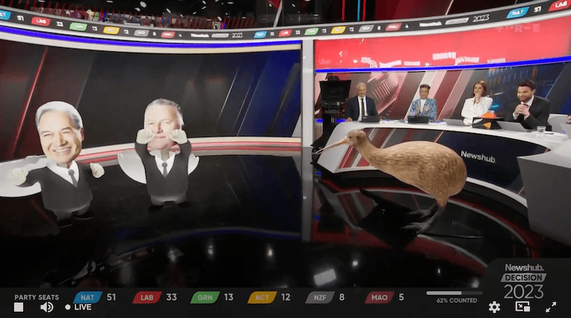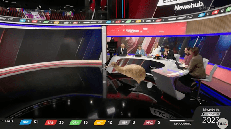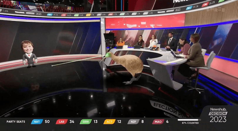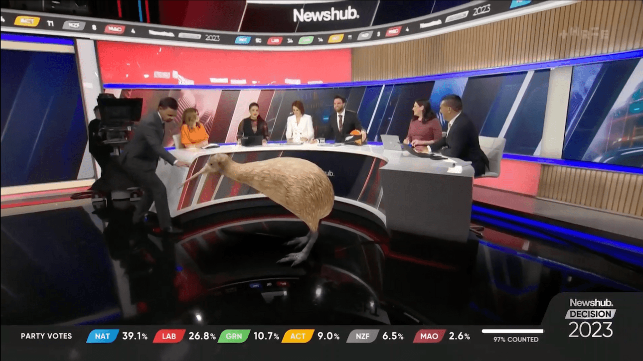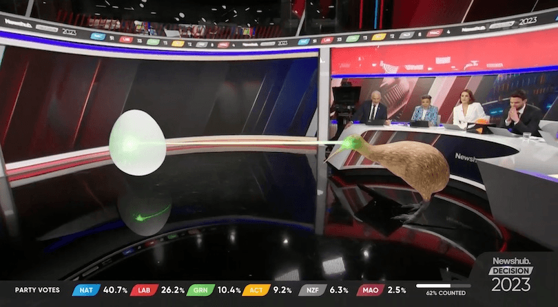The undoubted star of the evening was Three’s Linda the Laser Kiwi, who appeared at the press of a button to either give birth to a politician or… simply kill them with her laser beams? Much like a human birth, it was a sight to behold, and it’s no wonder former National MP Paula Bennett was so amazed when she first heard about Linda: