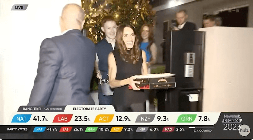 Political opinions may differ, but last night proved that nothing brings people together more than realising they’re on the TV. Some of the biggest cheers came from Tamati Coffey’s supporters during an live cross with Whakaata Māori, when they made so much noise that Coffey could barely hear. “They’ve just seen themselves on the television,” Coffey explained. Say no more, we understand completely.
