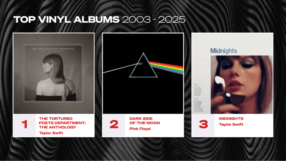 The vinyl revival would be much diminished without the contribution of Taylor Swift, one of the most popular artists in history. She has incredibly devoted fans, and plays them like a Fender, releasing dozens of variations which pump her sales beyond the already giddy heights they would naturally reach. She is the best-selling artist on vinyl of the last 22 years, a fact which will shock no one.