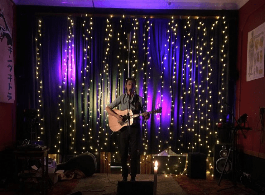 The next day on the way to Napier the horn got stuck. We pulled over, opened the bonnet and took turns staring at the engine. It was like the beginning to some shitty joke; a poet, a musician and an unemployed barista try to fix a car. So we continued down the North Island, the horn blaring, all wearing earplugs and pained expressions. We arrived in Napier and our gracious host, Jamie, put us up in the upstairs of an old bank that had an Overlook Hotel vibe about it. That night as we played downstairs to an attentive audience. The faint whine of the horn could be heard in the distance.