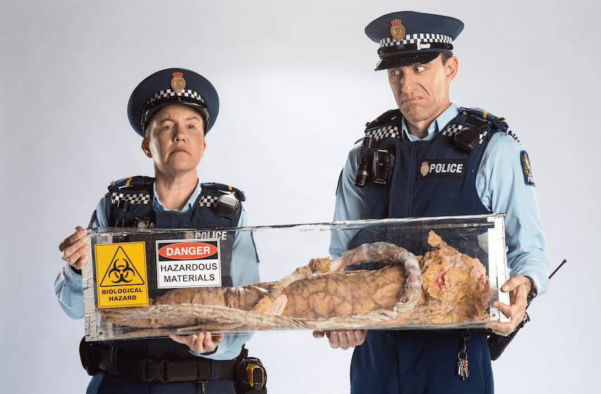 When the show travelled to the US, it wasn’t the New Zealand accents that were the problem. Despite Wellington Paranormal being a family-friendly show, the CW network required additional modesty edits, including extra pixelation to conceal two taniwha making love in Oriental Bay, and bleeping a budgie that says “fuck the police”. Season one’s scene where a possessed dog snarls “your mother sucks cocks in hell” – a reference to the infamous line from The Exorcist – was deemed so offensive that the audio had to be dropped entirely, and the mouth of the digital dog completely blurred out.
