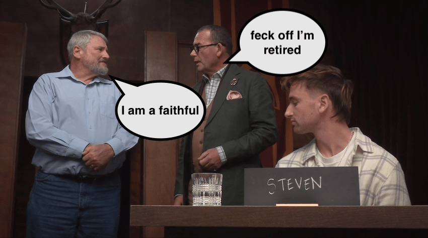 Please tip Stephen’s “feck off, I’m retired” cap for the way he dropped the ultimate guilt bomb moments before he was banished: “I am honest as the day is long. I am a loyal person to my family and friends, and you are my whānau. I am a faithful.”