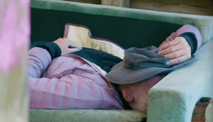 When they arrived at their camp, a masterclass edit between the reaction of Cully and actor Michelle Langstone revealed further depths to his bemused disdain. “My first impression walking into camp is… how come there are no windows, how come we haven’t got a back to our hut? Does it get windy? Is it going to get cold?” he fretted, visibly disturbed. “Sleeping really close to people that you don’t know? And then I ended up being on the top bunk? Great combo.”