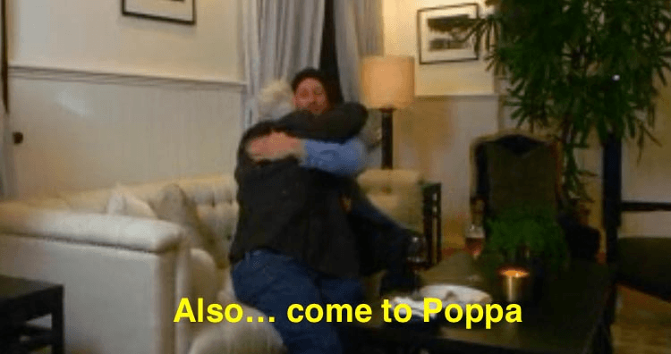 And then Dom took naughty Lucas aside for a man chat, where he executed his signature “come to Poppa” hug manoeuvre with beauty and finesse.