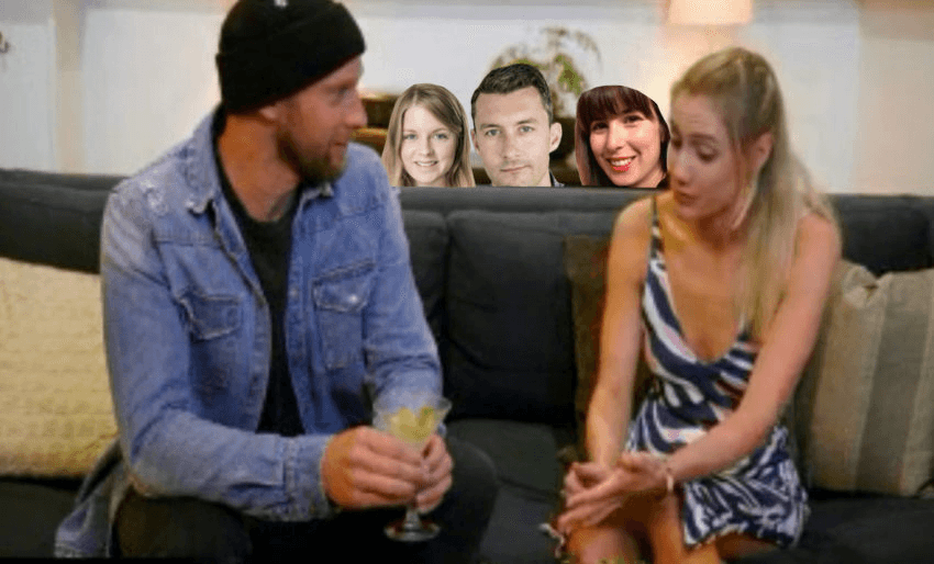 The experts had high hopes for sophisticated mingling, rich conversation and rapid relationship growth, but the couples proceeded to do what we Kiwis do best: get shitfaced and talk shit about each other. It was the high school canteen, where the popular clique (Ben, Bel, Vicky and Lacey) reign supreme over the stoners (Luke and Andrew) the boring loved-up couple (Brett and Angel), the grouchy muscle man (Haydn), the school nurse (Aaron) and the weird mature students in the corner (Claire and Dom).