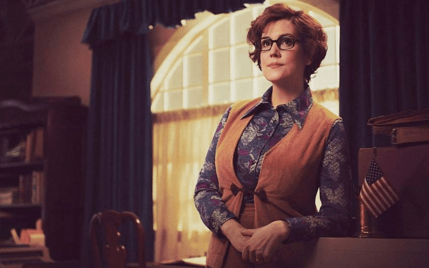 Lynskey’s performance as Rosie Thomson, one of Schlafy’s right hand women, stands in for a lot of Schlafy’s followers: women won over by Schlafy’s charisma, women scared of change, and women who silently questioned whether they were doing the right thing or not. It’s the ideal “supporting” performance, casting a different light on the lead character, while also giving a window inside her own character’s struggles.