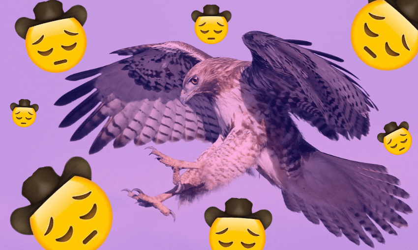 Despite my spoiler warnings, there were still clues in these responses that got me dangerously close to figuring out what “hawk tuah” meant. It definitely didn’t seem like something that people were proud to know (a Slack poll at The Spinoff provoked a deluge of “sad cowboy” reactions). That, combined with the fact it shares a visual style with that clip of the drunk lady who had Covid, makes me think “hawk tuah” is a new a verse from the Lad Bible that I probably wouldn’t like.