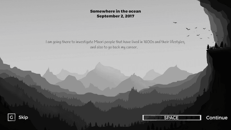 Ka Mate isn’t really what it says on the tin. You play as Sean, a washed-up Bear Grylls-style TV personality who’s trying to relax in Hawaii when a mysterious man tells him about a mysterious people who lived in New Zealand hundreds of years ago. Sensing his ticket back to the big time, Sean hooks up with some unscrupulous sailors who agree to take him ‘illegally’ to this mysterious ‘New Zealand’ (“It was a rather expensive option but it was the fastest.”). A week later, the sailors abandon him on a mysterious Pacific island called Jarvis. I respect their decision. His diary makes a pretty good case for him being a raging blowhard IRL.