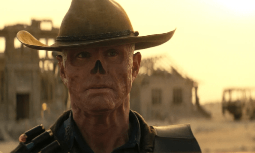Fallout is set in a post-nuclear apocalyptic world, and so it pays to discount humour by way of obvious gags. Instead, the show cleverly leverages the dark and nihilistic territory it has to play with. It’s incredible how quickly one of the show’s main characters, The Ghoul (Walton Goggins), goes from being a terrifying example of radiation poisoning, with a cavity where his nose should be, to reminding me of Jim Carrey at his absolute, absurdist best.