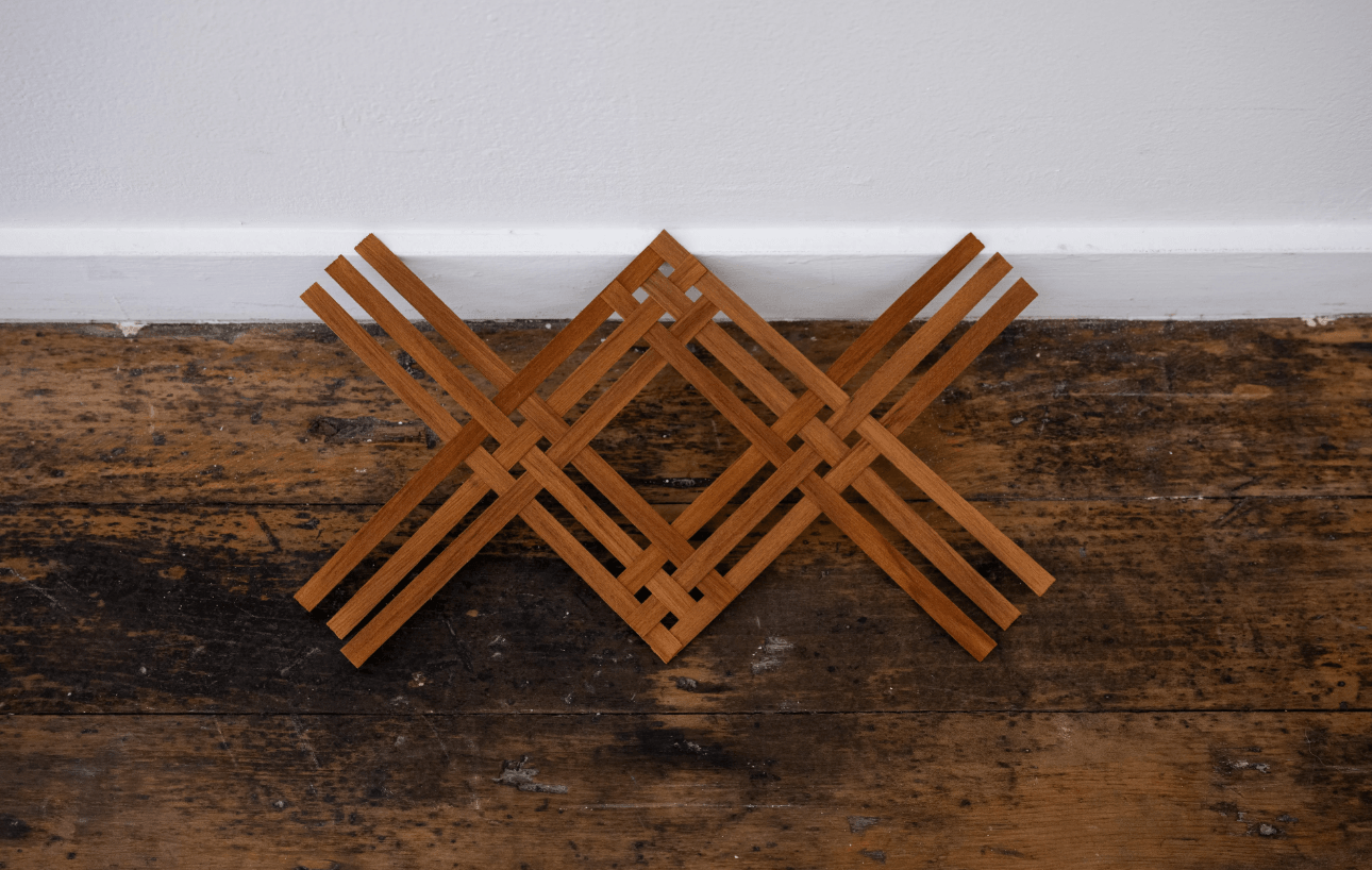 Whimsical, patterned sculptures in wood and textile that the artist uses to think about time and place.