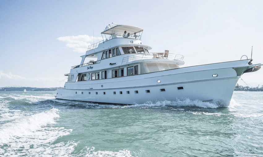 If you walk down on Auckland’s Viaduct during this chilly winter, you’ll see all the usual suspects: first year students straggling out of Danny Doolans, the manicured regulars at Soul, the giddy golfers at Holey Moley. You’ll also see a superyacht. Specifically, the Sea Breeze III, previously named Ulysses, previously owned by Sir Graeme Hart, and currently playing host to a 1920s-themed immersive murder mystery show called Butterfly Smokescreen.