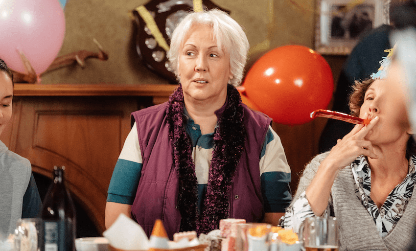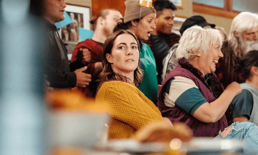 Erana James as younger sister Kahu has a chill gravitas that’s a great contrast with the more jumpy Mitch, and Alison Bruce and Rima Te Wiata attack their roles as the siblings’ lesbian mothers with brisk maternal vigour. After Te Wiata cheerfully suggests “four very well-done steaks” for dinner and Bruce sternly refers to a mismatched mug collection as the children’s inheritance, their attempts at what Mitch refers to as “passionate, problematic sex” feel believable and earned.