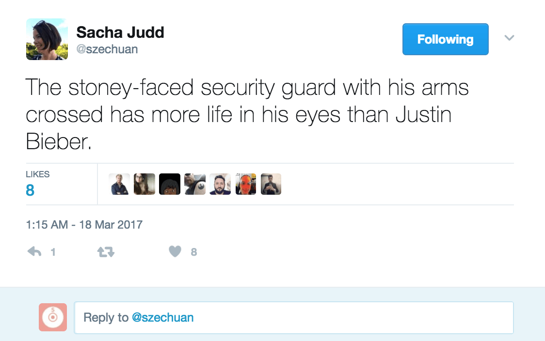 We finished our ciders and started in on some wine. It was hard to have a good time when Bieber clearly wasn’t. “I feel a bit sorry for him,” my friend confided. Bieber gave up and sat down on the stage.