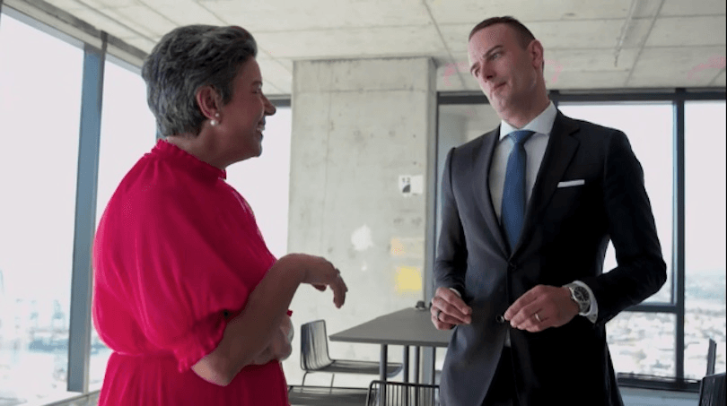 Rich Listers: With the penthouse’s high price tag, Diego and Paula discuss approaching their international buyers. “I’m pretty lucky I work a lot with that big kind of wealth, and the world actually,” Paula says, who as minister for social development oversaw significant welfare reforms and the sale of state houses. “As long as they pay the right money, anyone is welcome.” Diego agrees.