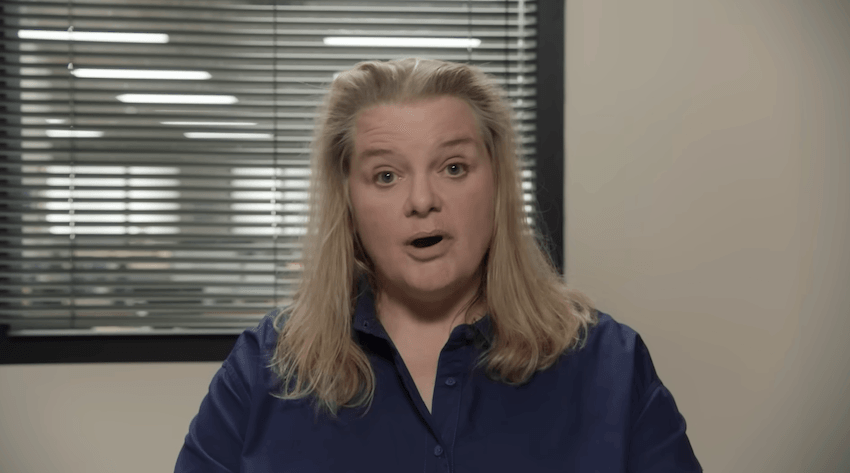 “Do I want to support the vision of my branch manager?” she hypothetically asks the camera, unblinking like Hannibal Lecter. “At all costs.” Hopefully that vision includes raising crow awareness in the form of her pet crow Russell, who appears to be let loose with the gusto of Dwight’s bat nemesis. No crows in New Zealand, just saying.