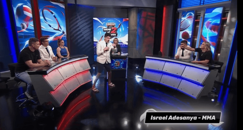 It hasn’t lost the chaos entirely, but has considerably modulated the old raw laddishness. It’s hosted by omnipresent Sky Sports presenter Laura McGoldrick, who brings an exasperated headteacher energy, and the show takes place on a spare set, with each team facing one another in a V-formation. Matt Heath, who only yesterday announced an intriguing move from Hauraki to ZB, hosts one team, while the ACC’s Manaia Stewart leads the other. For the first episode, Heath is joined by the charismatic double gold medalist Black Fern Michaela Blyde and former Highlander Joey Wheeler, while Stewart has the suddenly-everywhere Brodie Kane and Chris Key, a stalwart reporter for the Crowd Goes Wild (a tonal touchstone for the new Game of 2 Halves).
