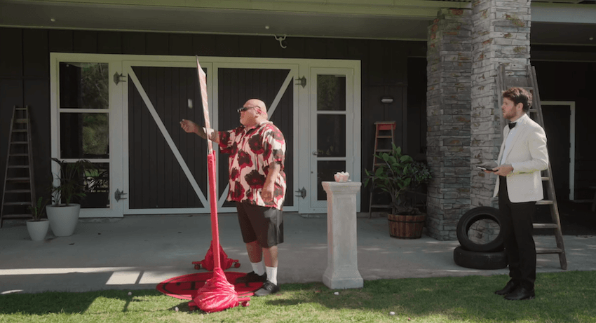 But of course, it is not that simple. “If Paul films you on his all-the-way zoomed-in camera, he will yell your name and you must return to the mat and start again. Every eight seconds, music will play for four seconds. When the music plays, Paul must film his feet.” I hope there is a “Paul does something elaborate with a camcorder” task in every season until the end of time. / AC