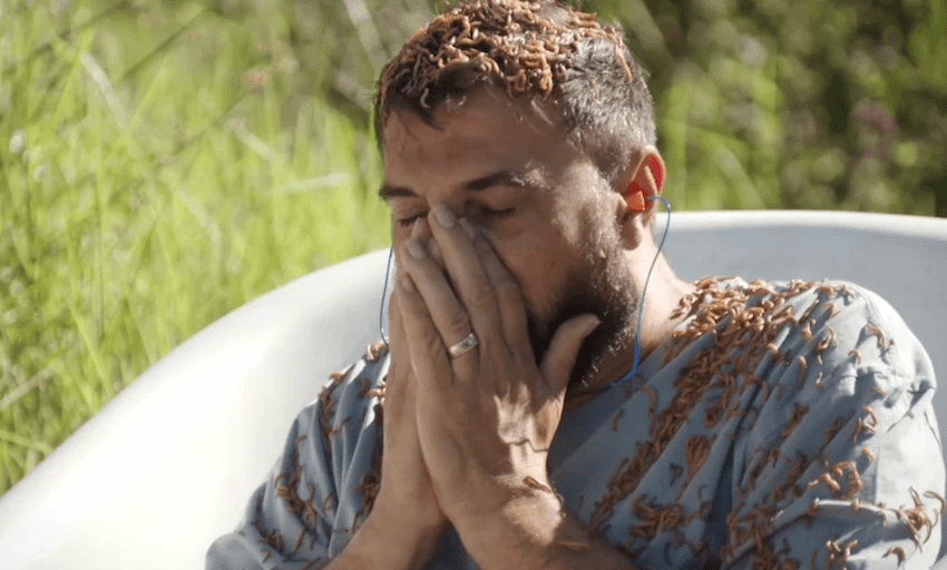 Colin had to nosh down an eyeball, Sam Smith had to get a Friar Tuck haircut and Julia had to get cryotherapy. But it was former Target host Brooke Howard-Smith who faced the biggest test of all: lying in a bath filled with cockroaches AND maggots. Here lies a truncated transcript of proceedings: “Brian, take it easy! Brian! Oh my god they are so big, why are they so big? Why are they so big, Brian?… Brian, do they bite?? They are feeling really itchy!!… Why would they be, why would they beeee??” Why would they be, indeed. / AC