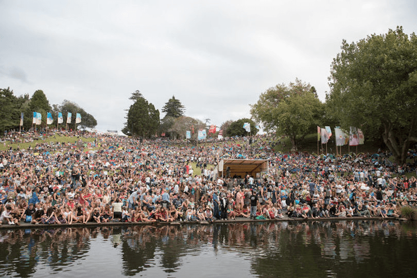 Brooklands Park makes a stunning space to hold a festival, with nooks and crannies to sit and eat and watch and listen. The TSB Bowl Stage sits superior on the lake and is a striking platform where artists have to get the crowd hyped up from a distance. From the floating stage, Bixiga 70 from Brazil got the weekend off to a cranking start with their theatrical performance of funk and South American electronica. The ten-piece band was full of energy as they blasted their way around the stage and treat us to a playful and fiery warm up. The hilarious Spooky Men’s Chorale had us laughing hard on Saturday with their deadpan humour paired brilliantly alongside their a capella performance. They reminded us how brilliantly bizarre and beautiful this place we’d found ourselves in for the weekend was, by pointing out some local wildlife, and telling us to “give a round of applause for the duck!”