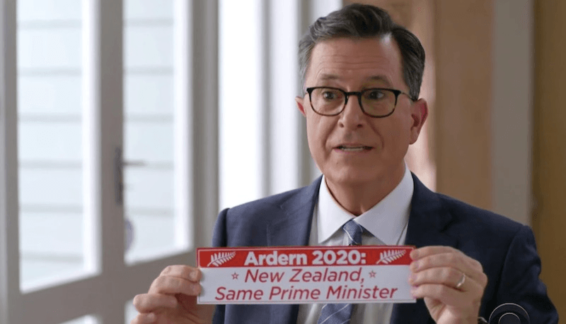 Don’t get sucked in by the jovial banter and the sausage sizzle with Jacinda Ardern. Stephen Colbert is an international criminal mastermind who must be stopped.