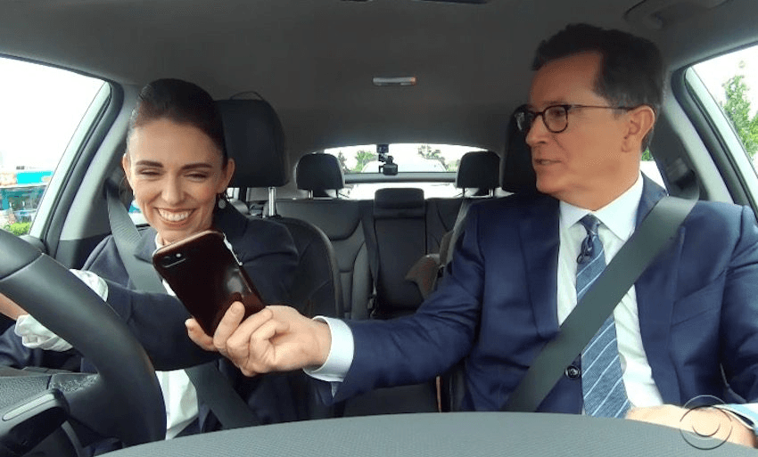 New Zealand is fizzing today with the exciting news that someone from another country has noticed that we exist. The Late Show with Stephen Colbert aired the first part of their week-long series exploring New Zealand last night. As you may recall, The Spinoff sent ripples around the world when it broke the news that the visit was under way after our investigative unit looked out the office window and saw Stephen Colbert and Jacinda Ardern standing around.