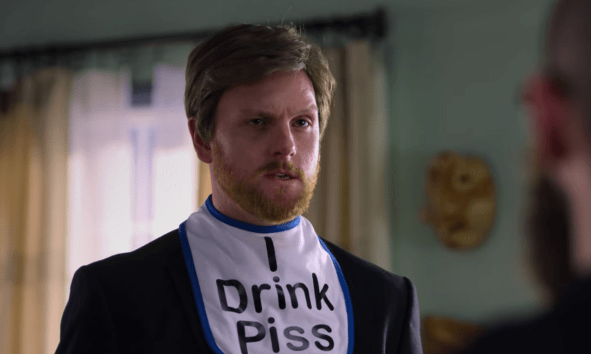 Aunty Donna is absurdist comedy, but it’s also about the absurdity of comedy. The central thesis of the show seems to be: “Why would you watch this?” At every turn, they challenge us to stop. When Broden sculls piss, when Mark drags out a mime of a full hook-up sesh silently and disgustingly, when Zach kills a man and is sucked into a trans-dimensional portal in a scene that’s audio-only; it’s either disgusting or impossible to understand.