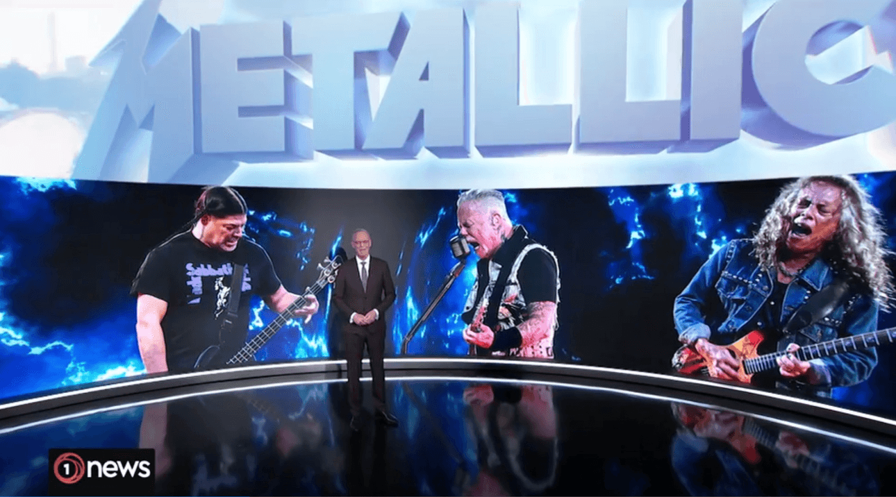 “LET’S GET READY TO ROCK!” newsreader Simon Dallow cried just 12 minutes into last night’s 1News at Six bulletin. The newsreader may have been wearing a sensible suit and tie, but Metallica were in the country, and Dallow was thrilled. TVNZ’s graphics department had already done some spectacular work, sweeping the camera over a computer generated crowd and putting Dallow onto a heavy metal stage. “The puppet masters are here, metalheads!!!”