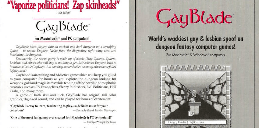 One of these early games is GayBlade (1992) in which designer Ryan Best placed “every type of person that had bullied [him] into the game as a monster you had to destroy.”