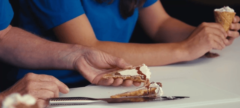 But sometimes you have to break a few eggs to make a waffle cone. Dariush and Ganesh tried everything to replicate the Tip Top waffle, but struggled with shape and texture. Dariush ended up squashing his batter between two frypans, while Ganesh muttered something about divots and a Lord of the Rings party and went to Mitre 10 to buy supplies.