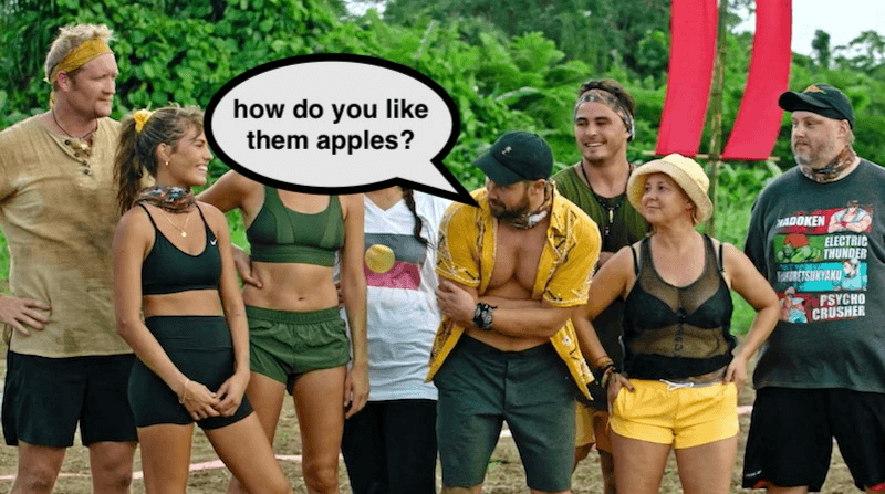 Yes, he’s an Olympian. Yes, he’s wearing a snazzy pendant. Yes, he hit lovely Shannon Ryan on the head with the cage door and didn’t say sorry. But at least he later told her “me Tarzan, you Jane” before promptly setting the shelter above it on fire. In a word: oarsome.