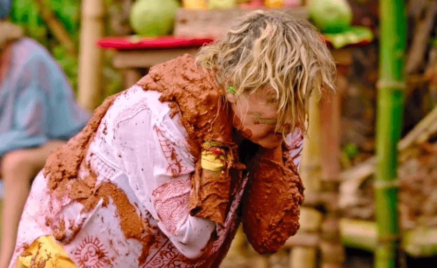 Me hearties, Jodie Rimmer’s Instagram handle is @shouty_pirate and frankly that is all you need to know. Determined to win the mud bucket challenge to win the platter of tropical fruit – “my bowels need that” – Jodie opted for a hilarious mud backpack technique not unlike Yoda piling onto Luke’s back and calling it a day. Yo ho ho and a fibre-filled tum, it absolutely paid off and they won the challenge.