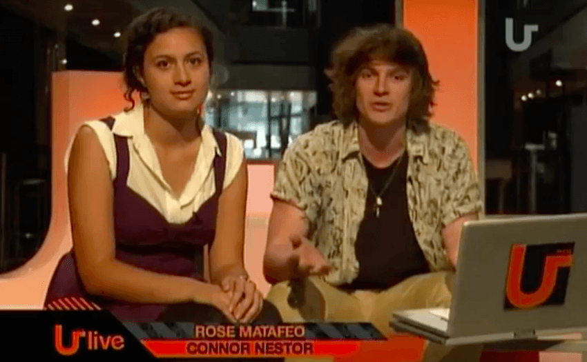 The final broadcast of U Live, airing Sunday the 31st August 2013, is still available to watch in full on YouTube. The microphones are broken, a myriad of people drift in and out, Nestor asks Matty McLean the mind-bending question: “Do you ever think the news will just… end?” It’s funny as hell, but there’s an air of melancholy. “It was the most unprofessional television ever made,” Matafeo says of the finale. “But it was really sad too. There was a complete restructure, so it was a tough time for heaps of people.”