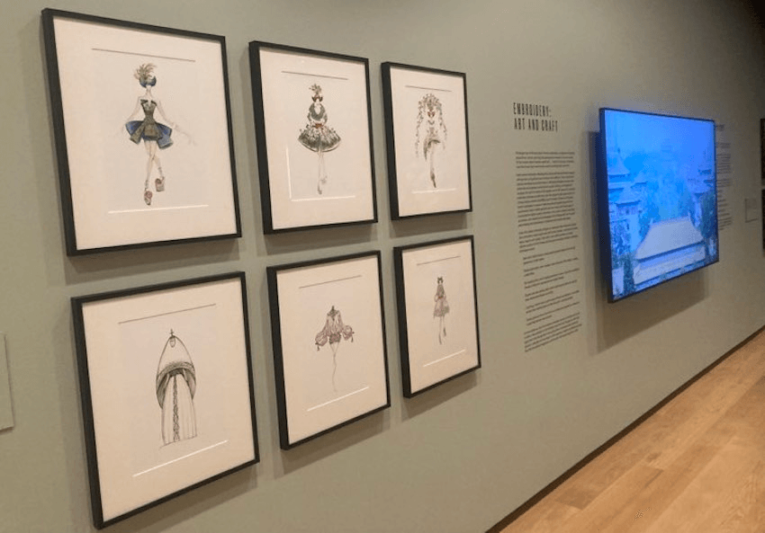 Fashion, Art, Fantasy is, right from the jump, overwhelming. I doubt there are more Swarovski crystals per metre anywhere else in the world right now. Most people go their entire lives without seeing one haute couture gown in person, let alone 60 of them. My most earnest recommendation for seeing this exhibition is to take a gamble on when it is going to be quiet – the Tuesday morning before Christmas was not quiet, so good luck – and allow yourself at least a minute to take in each gown and their details. (And maybe another minute to take in the shoes, especially in the Magic and Dreams part of the exhibition. Pei’s gowns defy the bounds of craftsmanship, but her shoes defy the bounds of humanity, or at least human perambulation.)