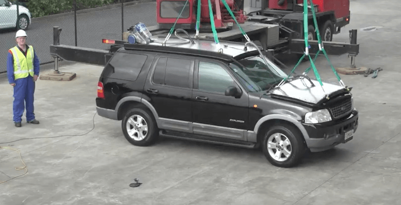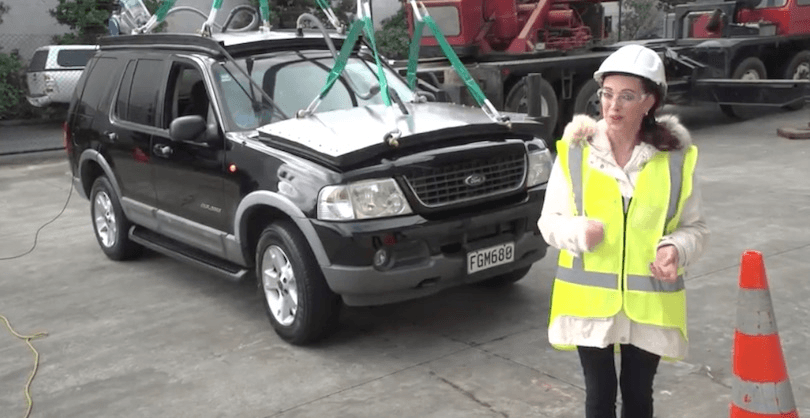Like God’s creation of Adam, Suzanne connects the electrical cords. The power is unleashed, the crane begins to lift, and the two-tonne SUV moves slowly off the ground. The suction holds. Suzanne Paul is defying gravity and I am as shook as that time she dropped a bowling ball onto a bamboo pillow without breaking any of the eggs underneath.