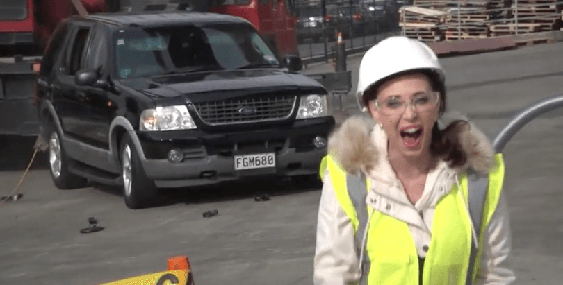 The SUV hangs in the air with all my hopes and dreams. This is an incredible moment in New Zealand television, and when someone asks me “where were you when you first saw Suzanne Paul lift a truck into the air with a vacuum”, I’ll be proud to say I was at home in my pyjamas, eating hot chips and thinking there is no better time to be alive.