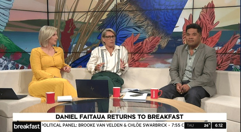 Breakfast kicked off the new year with a familiar face behind the desk: old mate Daniel Faitaua. He replaces Matty McLean, who spent 17 years on the show eating super hot chillies and dropping f-bombs live on air before departing for a new job in radio. McLean left big T.rex shoes to fill, but Faitaua was ready, having already been Breakfast’s newsreader between 2016 and 2019. “I’m just checking myself out in this new studio,” he said, showing an impressive level of enthusiasm for six o’clock in the morning.