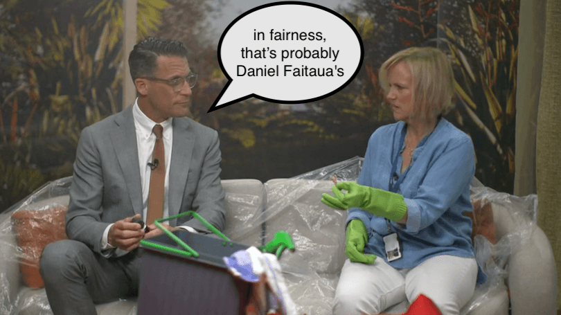 “Hello, big boy,” Chris Chang greeted him, welcoming Faitaua back after several years away as TVNZ’s European correspondent. Breakfast then showed a short but serious montage of Faitaua’s recent work, which included Faitaua saying random things like “no soggy bottoms” and “the pavement at the front of the building”. Everything is normal, welcome back to Breakfast.