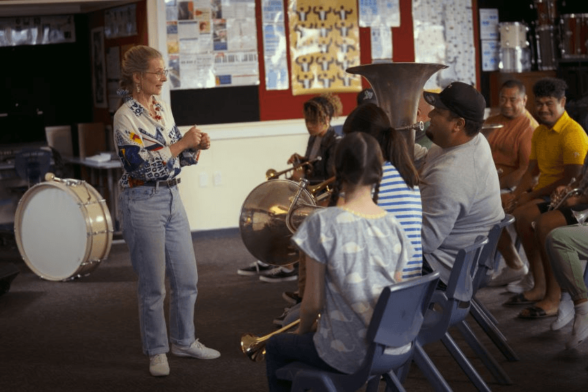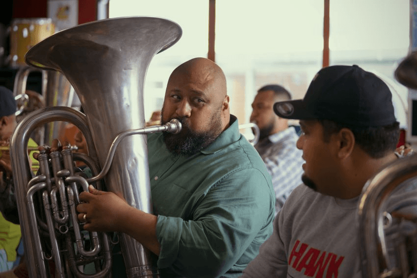 After the show, Finau got in touch with his friend Danny Mulheron to sound out the idea. “Danny asked me, where did this idea come from to have Tongans playing bagpipes?” So Finau told him: “Well actually my Tongan church formed a brass band back in 2011 to perform at the Tonga versus France Rugby World Cup match. But the thing is, we weren’t a brass band and we’d never played any wind instruments.” Before he could even finish telling the story, Mulheron suggested he should make a film about that instead.