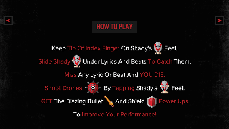 Honestly, it’s probably the most fun of the games I’ve played for this upsetting time-dump of a series. It’s a rhythm game disguised as an edgy game where you throw chainsaws at drones (this actually happens in the game, and it’s dumb as hell). As lyrics come at you from the sky, you slide your index finger to make Slim Shady (who is a hockey mask-wearing, wifebeater-wearing, chainsaw-wielding white dude) collect the letters.