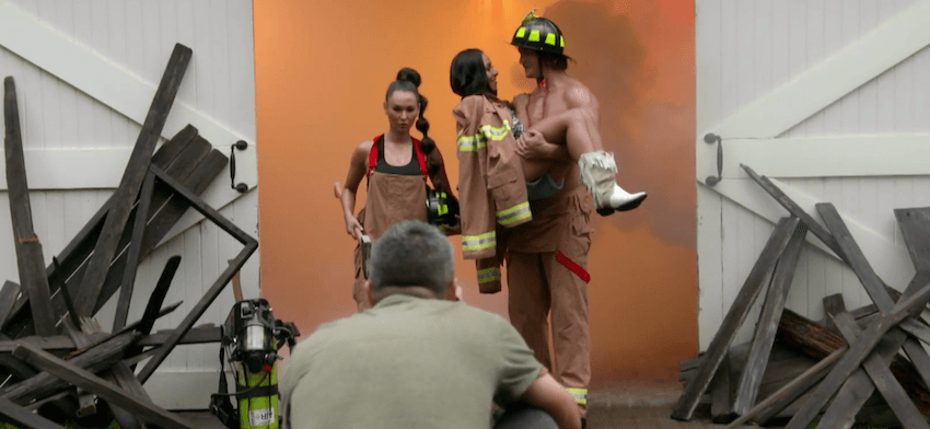 At the group photoshoot date, we learn the girls are not here to make friends, they’re here to be America’s Next Top Model. Cass poses as a hot 80s groupie, which Nick is totally into. We are reminded for the 700th time that Cass already knows Nick and is obsessed with him. Vanessa Sunshine looks fierce in a potato sack and poses awkwardly to the side whilst Nick and Brooke experience some “hectic chem[istry]” in the fireman shoot.