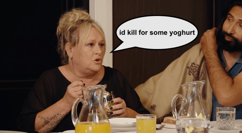 I have a theory that you can tell who is a traitor based entirely on who does the most boisterous thing when they come in through the door at breakfast. This week, Brooke Howard-Smith either danced in chanting “I’m alive, I’m alive, I’m alive!!!” or did jazz hands while bellowing “SHOW ME THE PASTRIES!!” If that wasn’t evidence enough, he also did a JOKE VOTE for Sam at the roundtable AND deceived the faithfuls in the wine bucket challenge. The man is getting away with literal murder, and I simply have to take my AMOG hat off to him.
