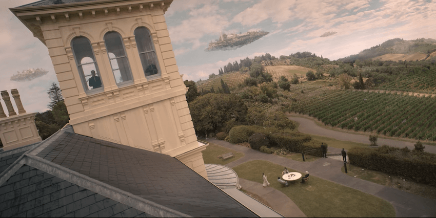 The location of this meeting? Why, it’s Pah Homestead, the glamorous Hillsborough art gallery. The spaceship, presumably, is CGI.